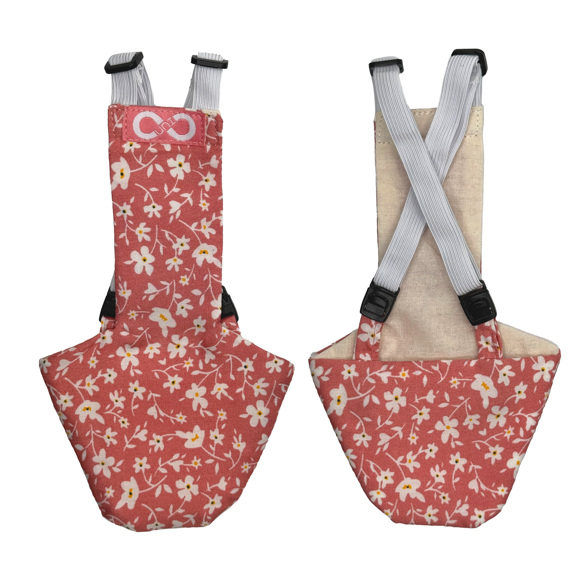 Make sure the Uni Infinity logo on the chest fabric sits just below your chicken’s crop. If the logo falls between the legs, it’s time to size up. The straps should feel snug but not tight—if even the loosest setting is too tight, you can use strap extenders, which are available to purchase in our store. Finally, the poop pouch should fully cover the vent; if it doesn’t, get the next size up.